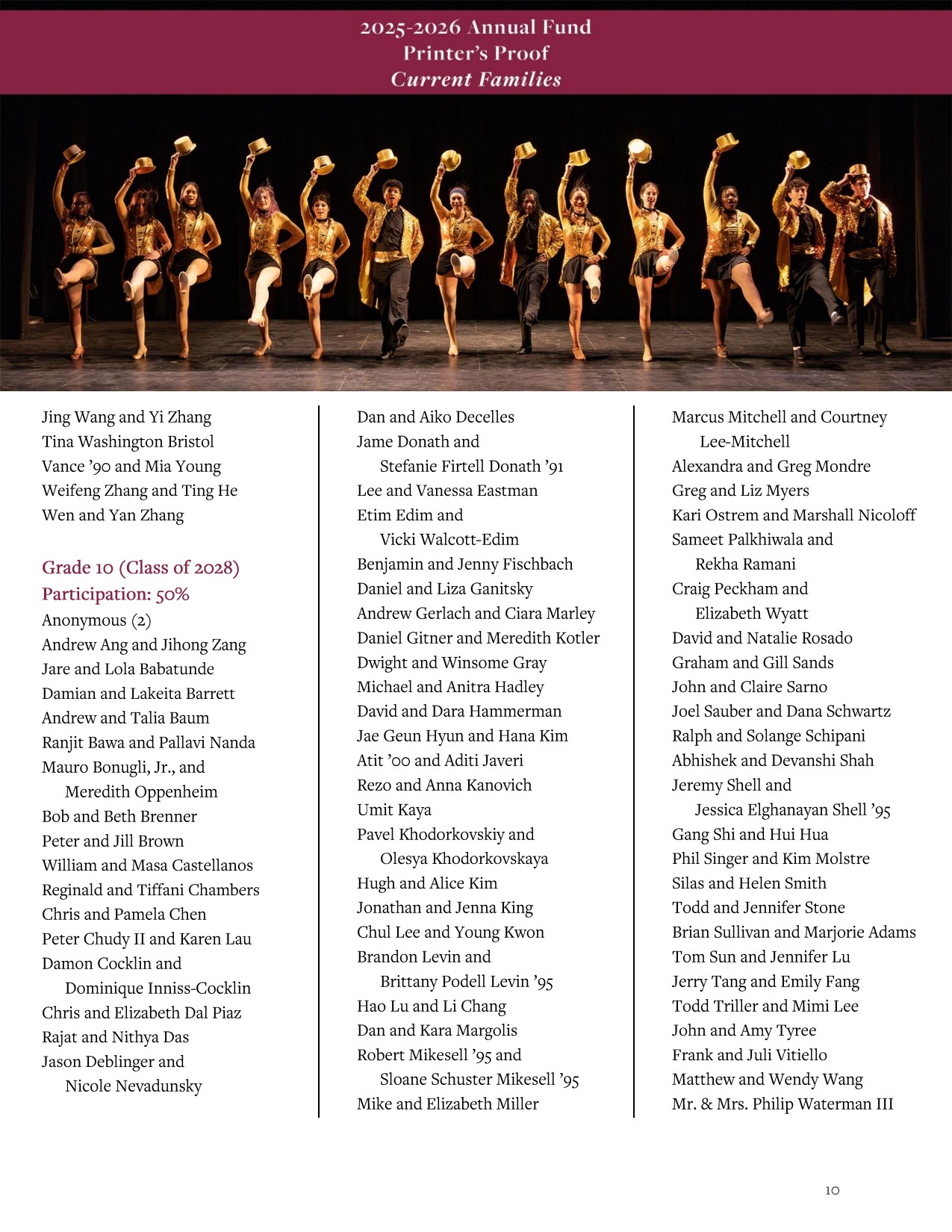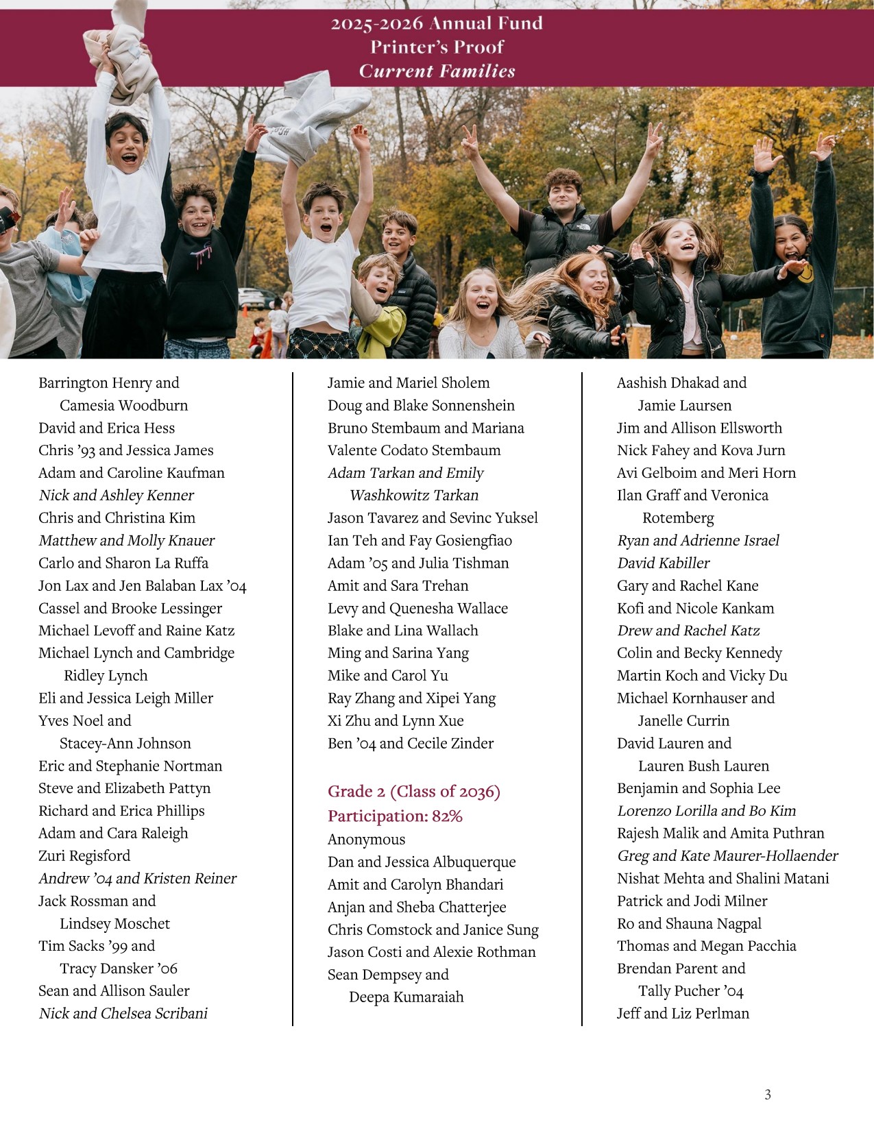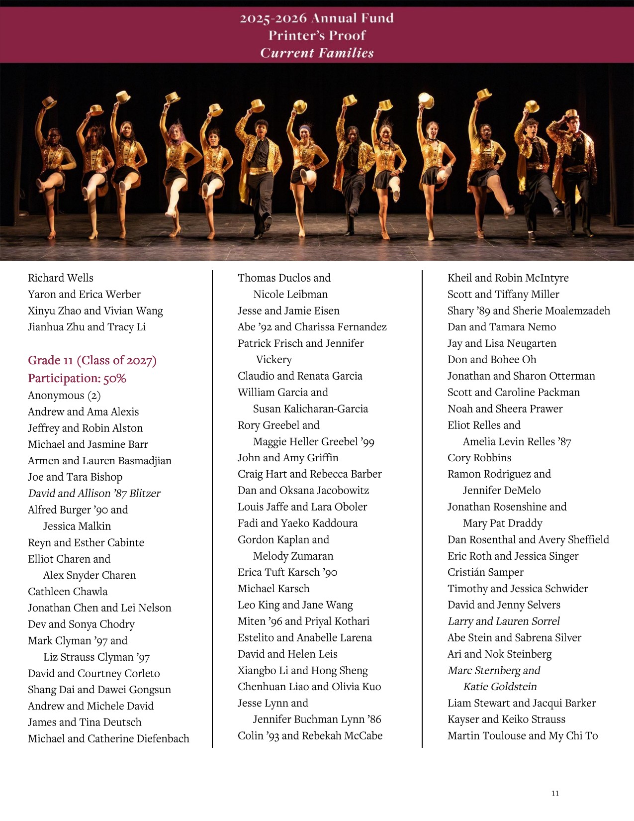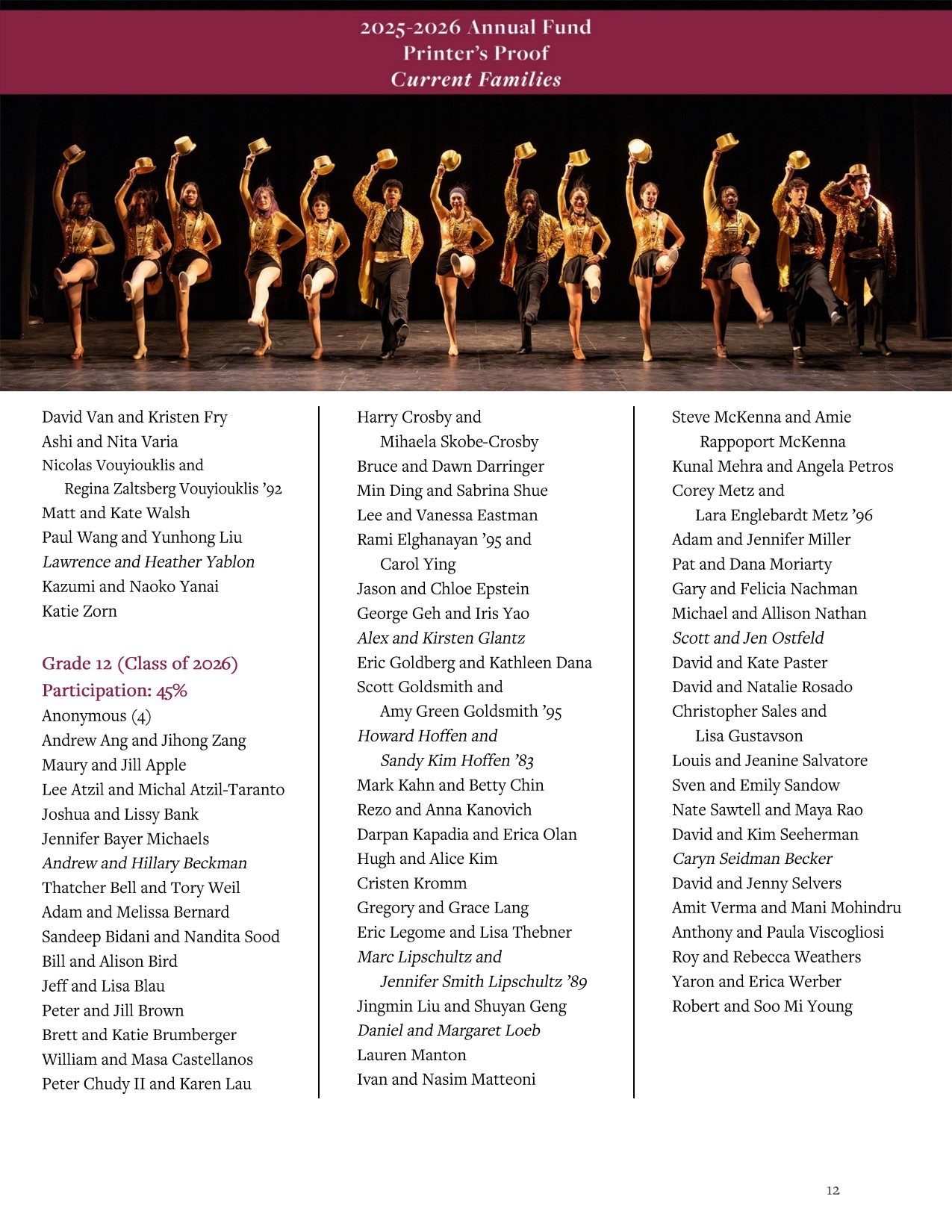 This digital Printer’s Proof recognizes current parents who have made gifts or pledges to the Annual Fund from July 1, 2025, through April 1, 2026.