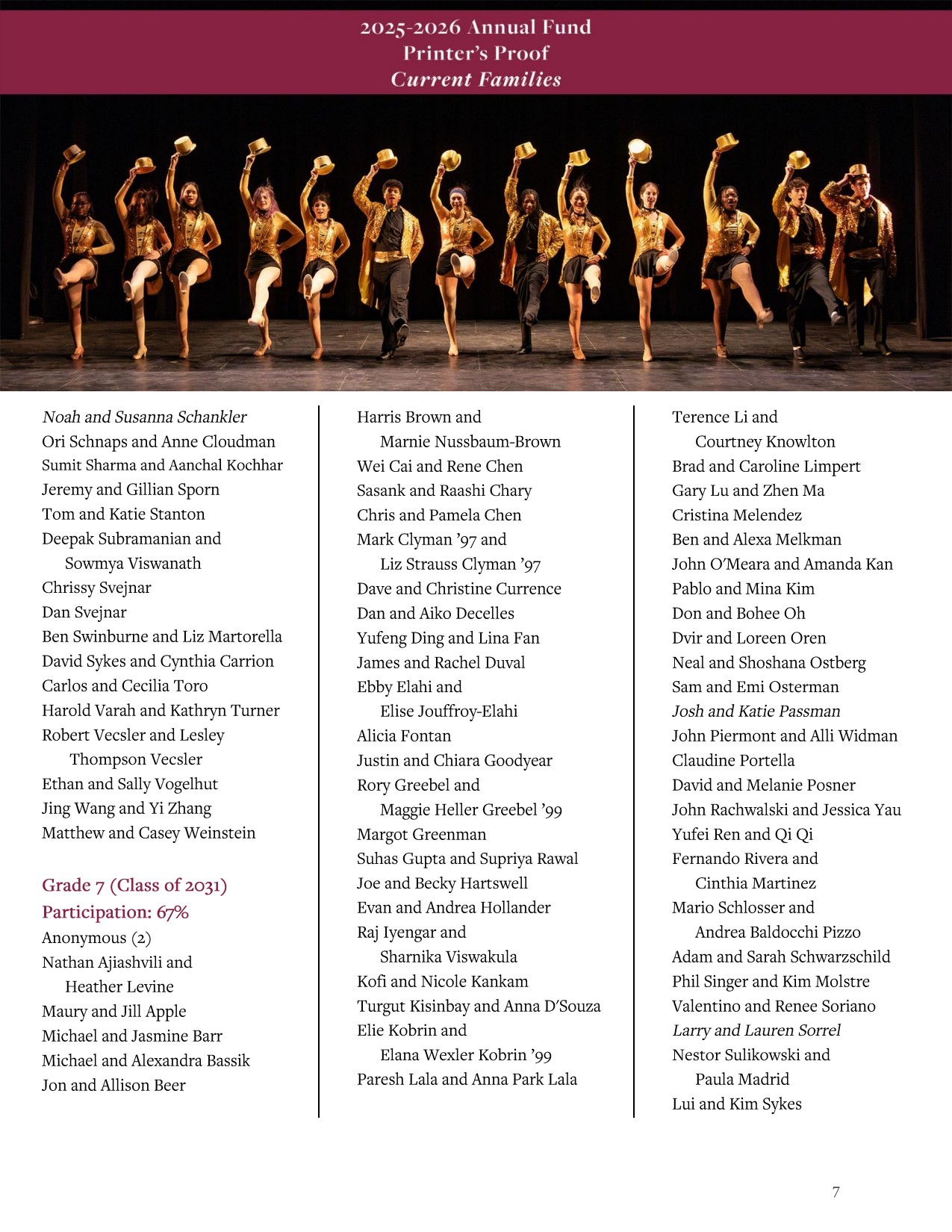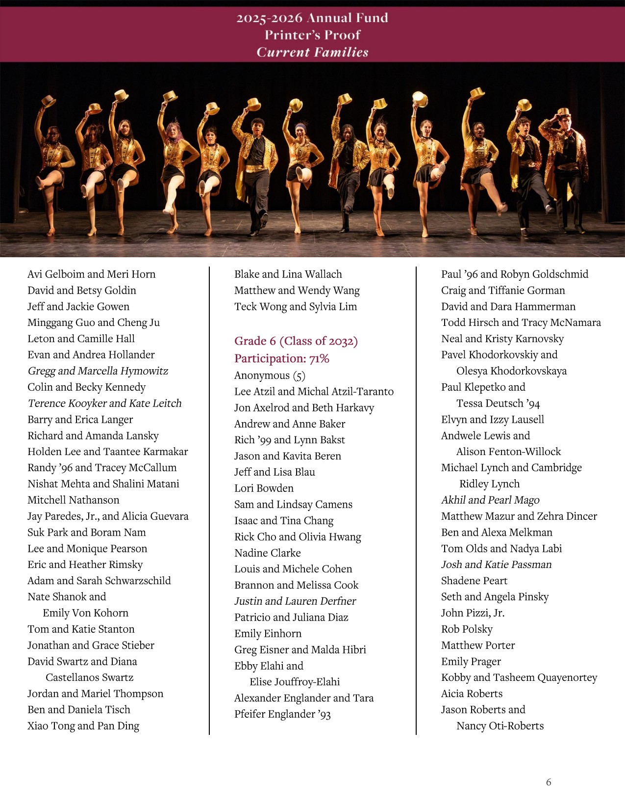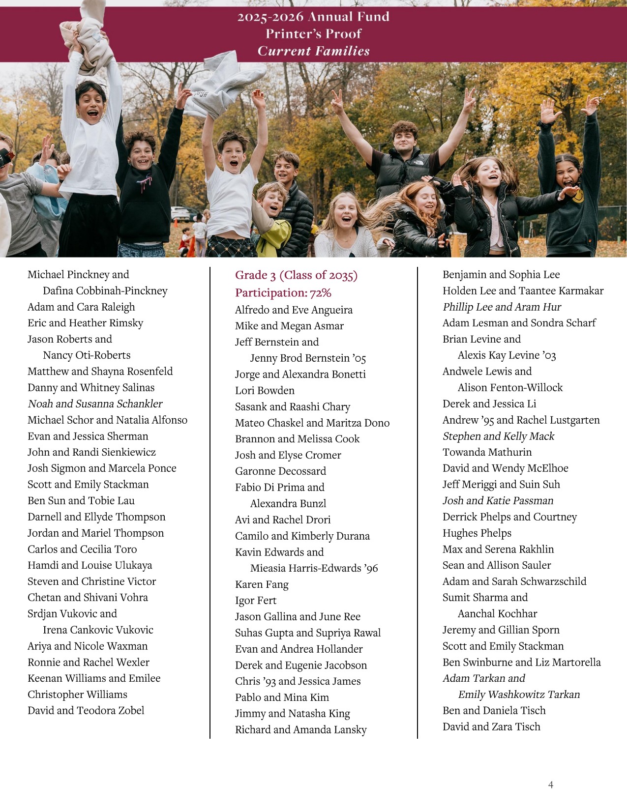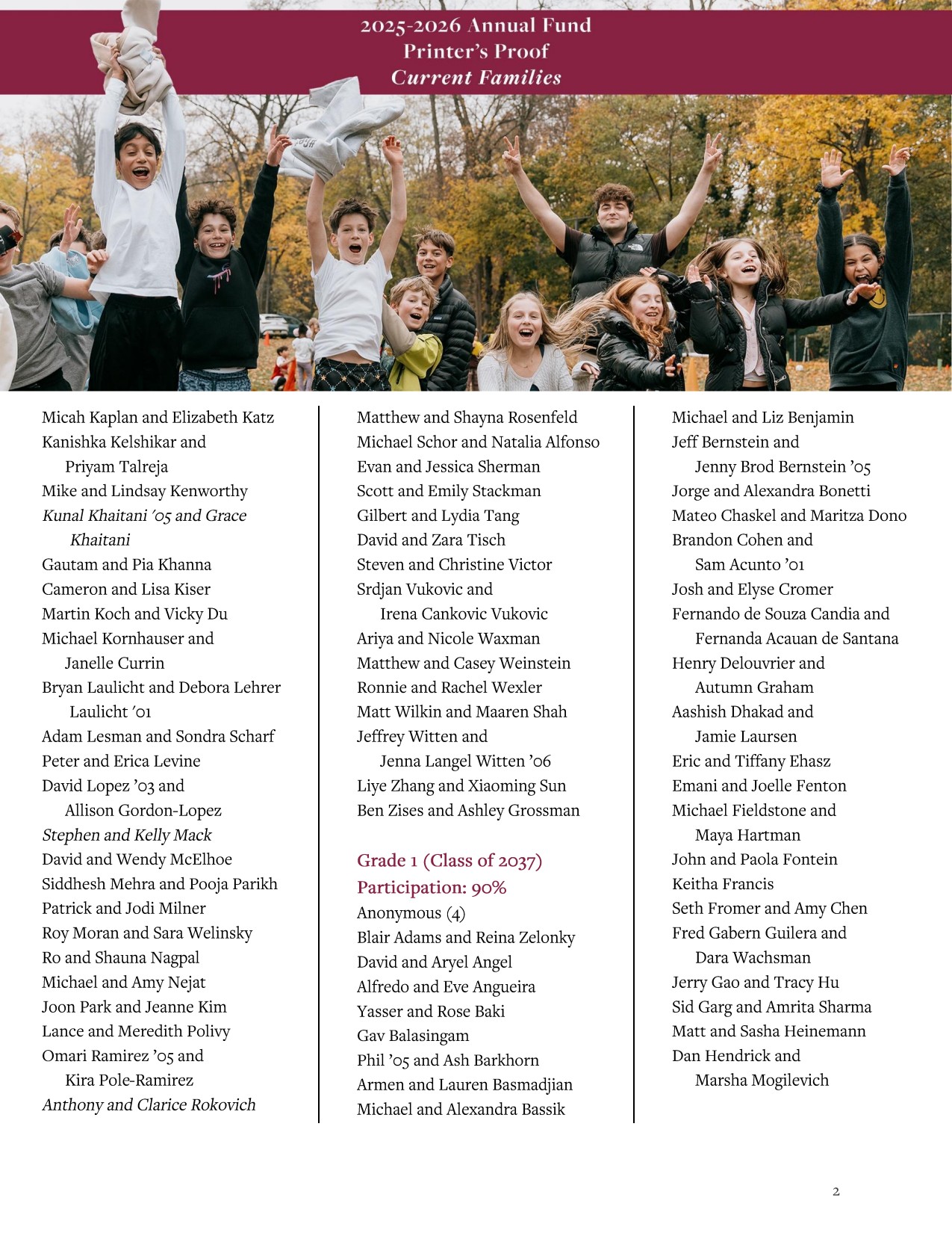 This digital Printer’s Proof recognizes current parents who have made gifts or pledges to the Annual Fund from July 1, 2025, through April 1, 2026.